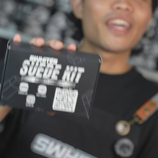 The Swhites Suede Kit is specially designed to gently clean delicate materials such as suede and nubuck without causing damage. It includes the Swhites Suede Eraser to lift dirt, stains, and scuff marks, and the Swhites Suede Brush to restore the nap and refresh the shoe’s appearance.